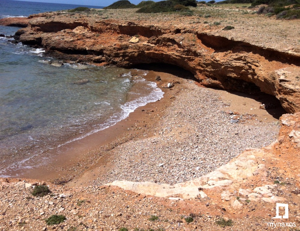 Στα άκρα της απάνεμης αμμουδιάς της Αγιασού υπάρχουν βράχια ενώ τα αρμυρίκια οριοθετούν την παραλία.