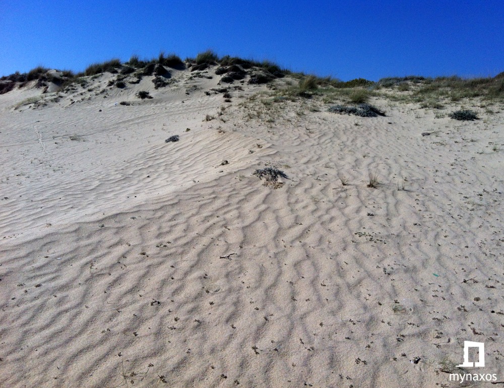Η ψιλή, σχεδόν λευκή άμμος της, σχηματίζει μικρούς και μεγάλους αμμόλοφους που λατρεύουν τα παιδιά να παίζουν.