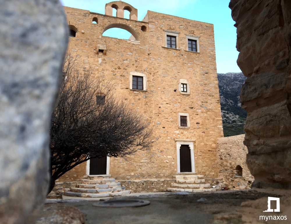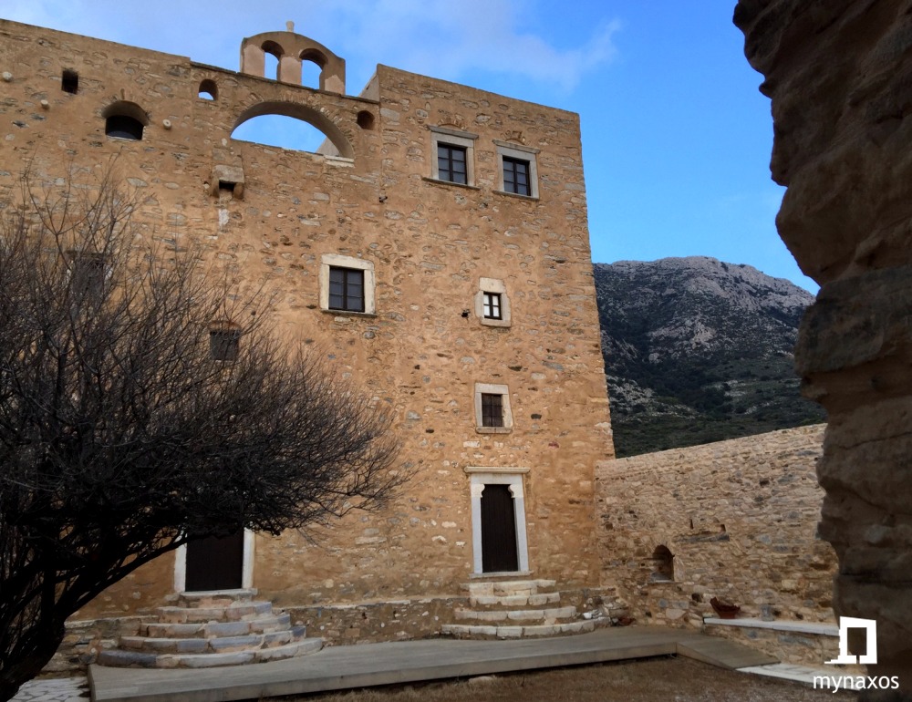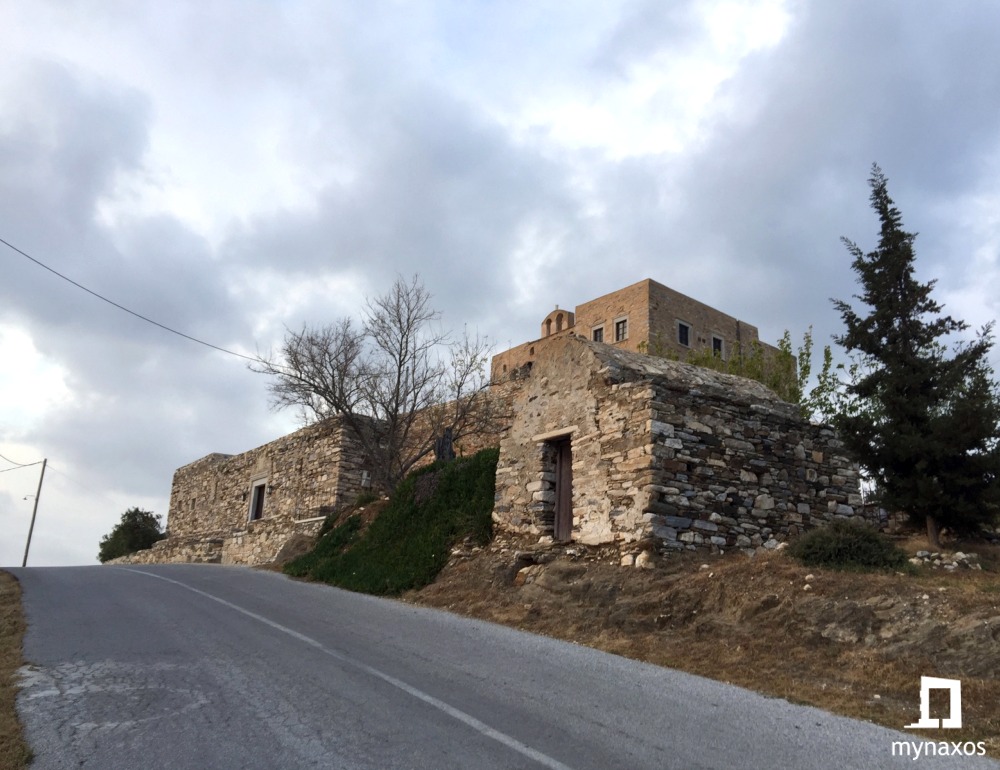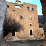 The Timios Stavros Monastery or Bazaios’ Tower is located 12 km south of Chora, in Kampos of Agiasos.