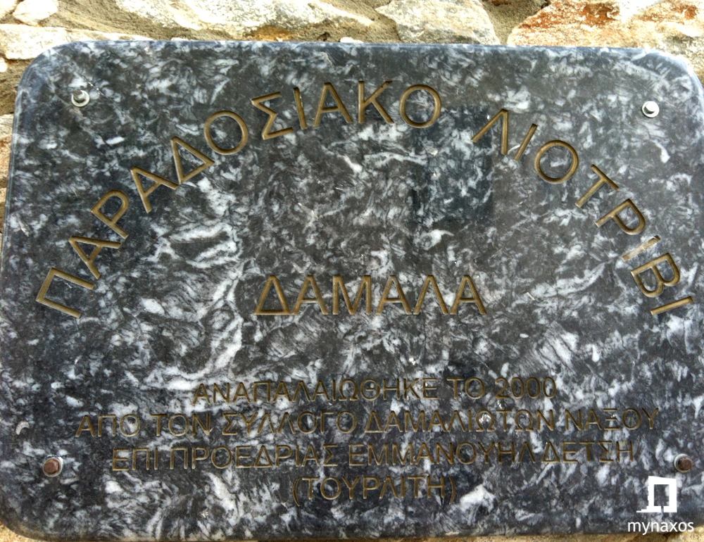 Μέχρι το 2000, ο χρόνος είχε αφήσει έντονα τα σημάδια του στο ελαιοτριβείο. Ο Σύλλογος Δαμαλιωτών Νάξου όμως αποφάσισε να δώσει και πάλι ζωή στον ερειπωμένο χώρο. Το ελαιοτριβειο αναπαλαιώθηκε με αγάπη, μεράκι και σεβασμό στην ιστορία του.