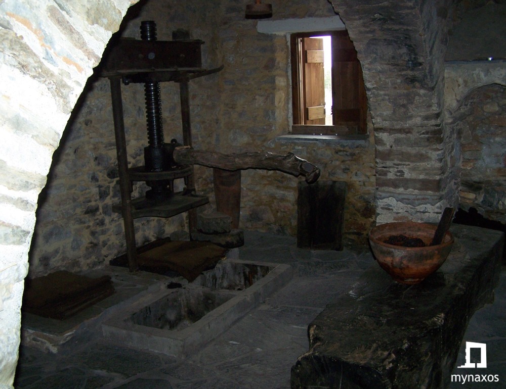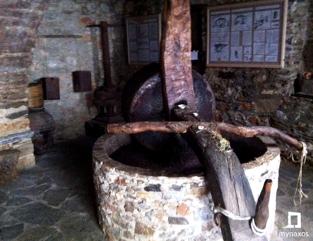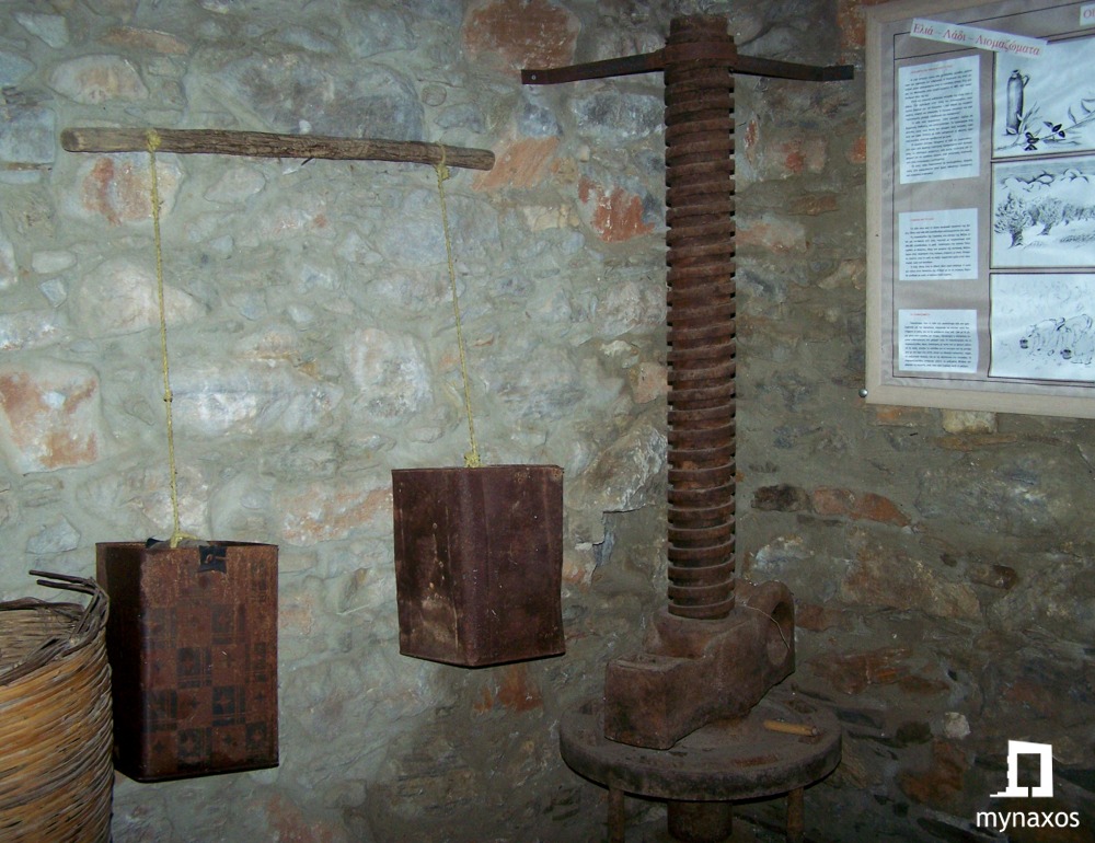 Στους χώρους του ο επισκέπτης μπορεί να δει και να επεξεργαστεί τον μεγάλο κύλινδρο, τα εργαλεία και τα σκεύη που χρησιμοποιούσαν οι άνθρωποι του χωριού για να παράγουν το λάδι αλλά και να θαυμάσει την μοναδική αρχιτεκτονική του πετρόχτιστου κτιρίου.